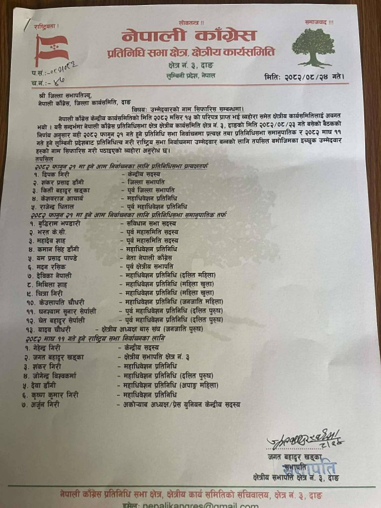 कांग्रेसबाट दाङ क्षेत्र नम्बर २ र ३ बाट सिफारिस भएका यि हुन उम्मेदवार ?